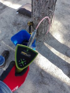 Durante la última semana del pasado noviembre, el Ayuntamiento de Rocafort, realizó un tratamiento por endoterapia con abamectina de 8 zonas de nuestro municipio. Es una técnica que permite tratar las plagas inyectando en los troncos el producto que las matará. Desde ahí se distribuirá por las ramas hasta llegar a las hojas donde producirá la muerte de las larvas al alimentarse.